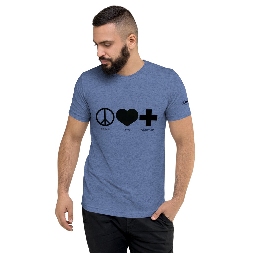 Clean, bold, and versatile—the Monochromatic PLP T-Shirt delivers everyday comfort with a powerful message. Made from a soft tri-blend fabric, it features the iconic Peace ☮, Love ❤, Positivity ✚ design across the chest. Lightweight, durable, and designed with a modern unisex fit, it’s perfect for any occasion.