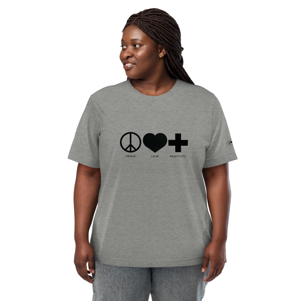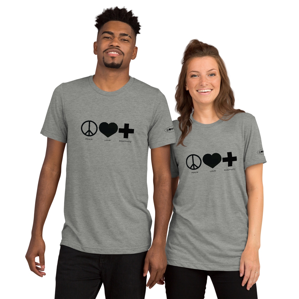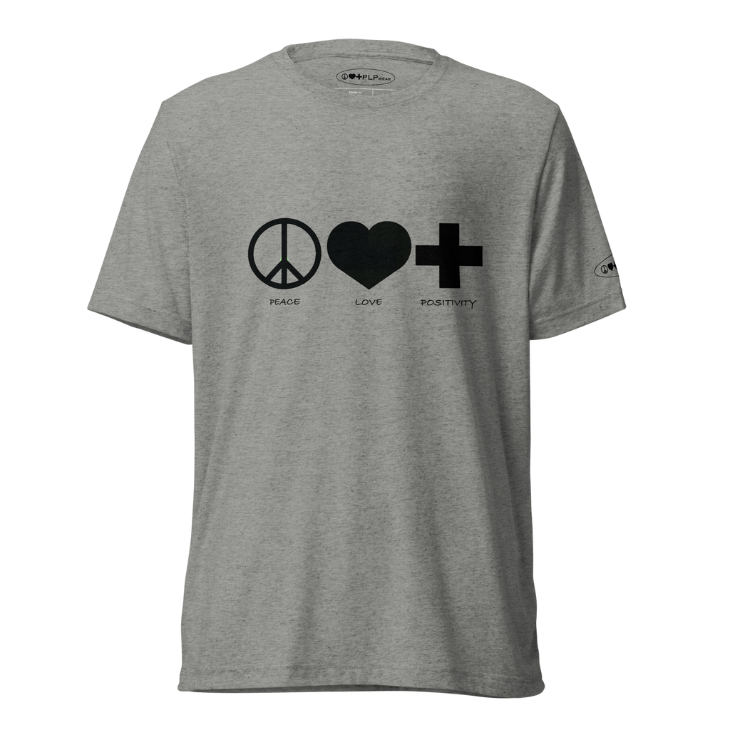 Clean, bold, and versatile—the Monochromatic PLP T-Shirt delivers everyday comfort with a powerful message. Made from a soft tri-blend fabric, it features the iconic Peace ☮, Love ❤, Positivity ✚ design across the chest. Lightweight, durable, and designed with a modern unisex fit, it’s perfect for any occasion.